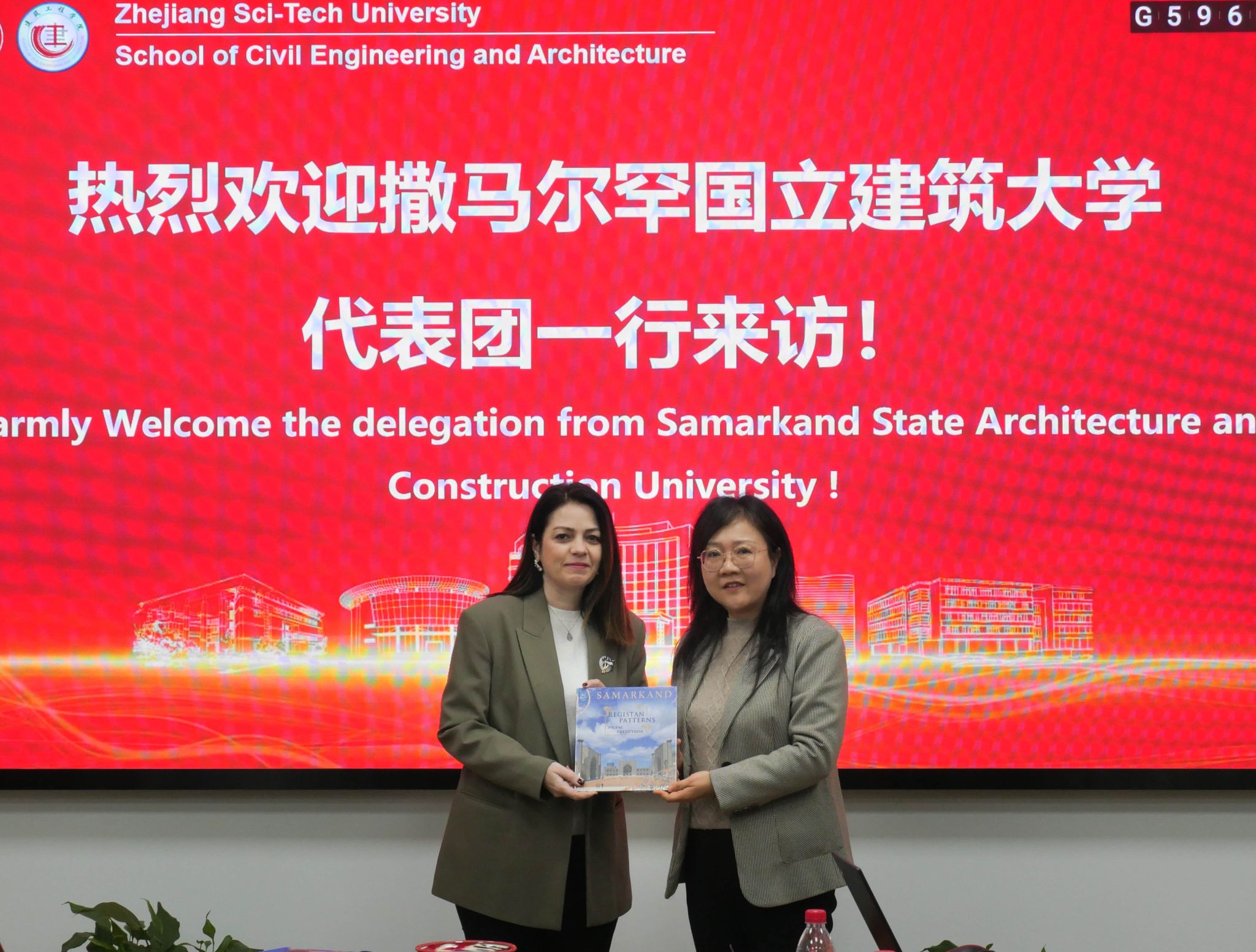 在欢迎仪式上,顾晓强院长代表学院致辞,对撒马尔罕国立建筑大学校长Cigdem Canbay Turkyilmaz和第一副校长Juramirza Abdiramatovich Kayumov的到访表示热烈欢迎。李娜向代表团赠送具有“一带一路”特色的礼物,校长Cigdem教授向抖阴