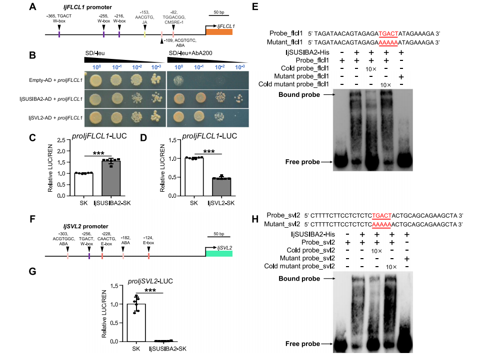图2:IjSUSIBA2促进IjFLCL1(被IjSVL2抑制)并抑制IjSVL2的表达
