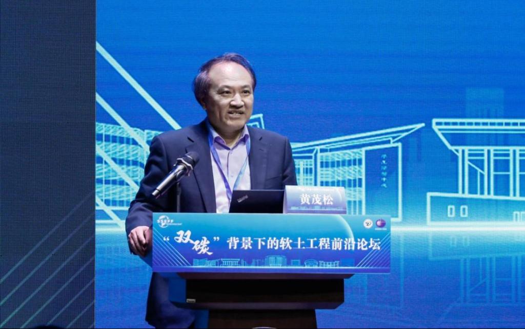 随后,中国土木工程学会土力学及岩土工程分会副理事长、专委会主任黄茂松教授致辞。他认为,在当前的国际国内形势下,推进绿色低碳发展已成为社会共同关注的重要议题,软土工程作为工程建设中的重要领域,也需要紧跟时代步伐,为实现双碳目标贡献力量。