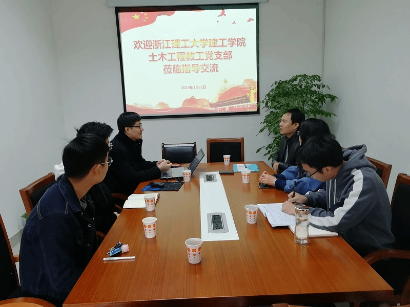 土木工程教工党支部书记杨博带领支部委员施萍萍和蔡其茅走访了浙江工业大学结构工程研究所师生联合党支部,会见了该支部的支部书记付传清博士及支部委员们。