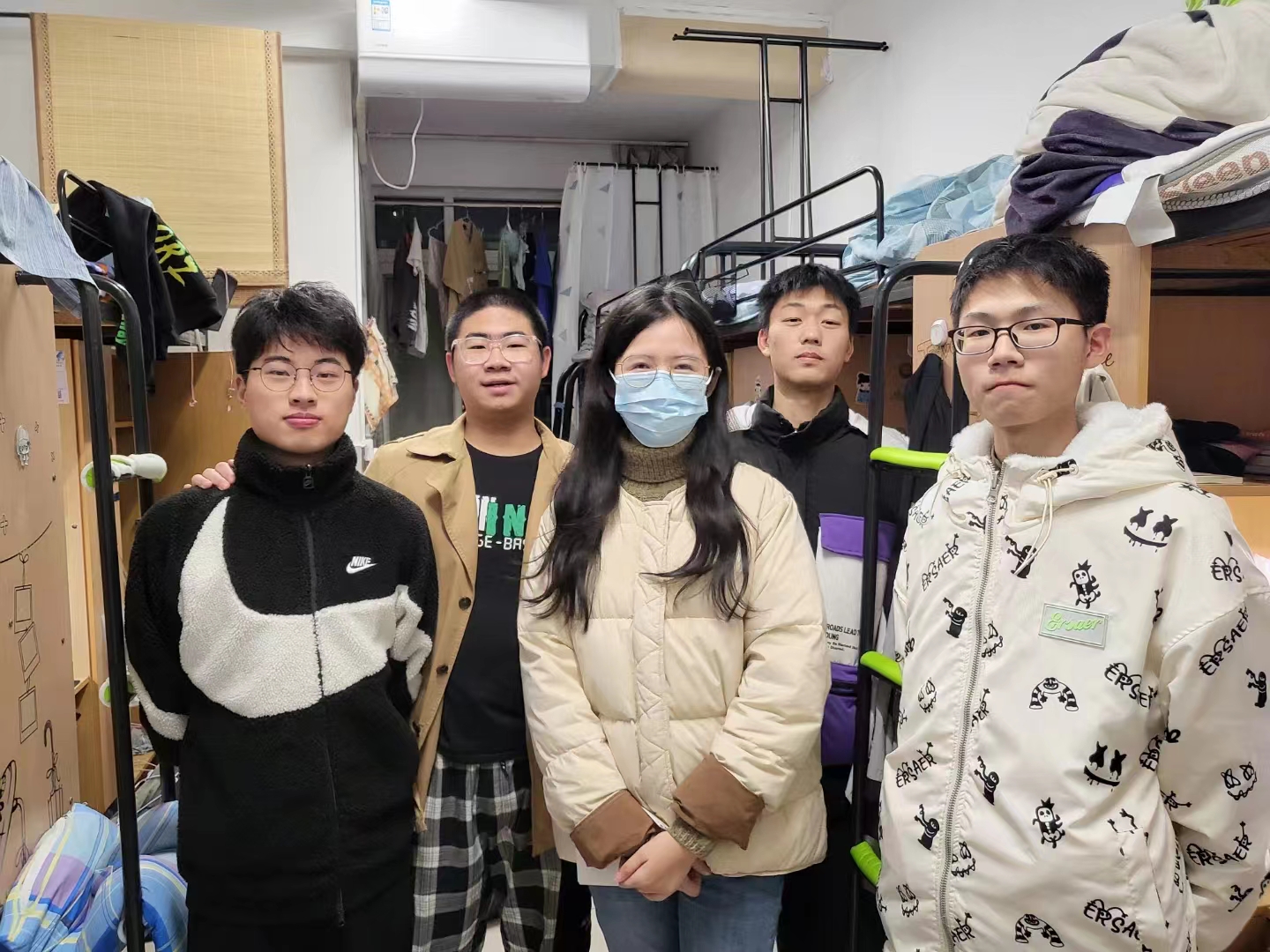 学院领导、班主任、辅导员老师和学生干部深入学生宿舍内部,与学生亲切交谈,倾听帮助解决同学们急难愁盼的事情,引导同学们与室友和睦相处,爱护寝室卫生, 提醒同学们注意寝室安全用电,人身财产安全及防诈骗。辅导员老师们希望大家能坚持早晚自习,同时注意改善宿舍环境卫生,培养良好的学习和生活习惯,用严格自律的高要求自我管理,自我“增负”,把目标管理和价值观确立融入日常学习生活,做符合时代要求的高素质人才。