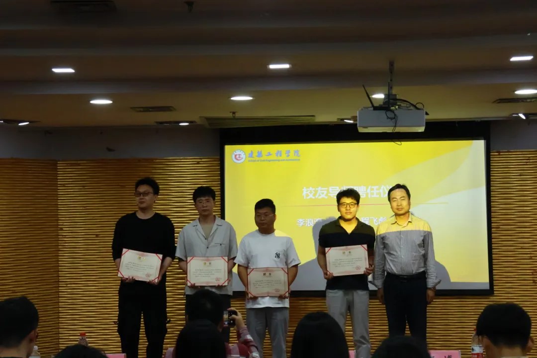 副院长杨博、建环系系主任吕超、学工办主任王欢欢、学院学风建设指导中心指导老师虞雅伦以及建环系校友奖学金捐赠人李浪浪、2010级建筑学校友厉少锋,2013级风景园林校友程飞彪、程红伟出席本次活动。