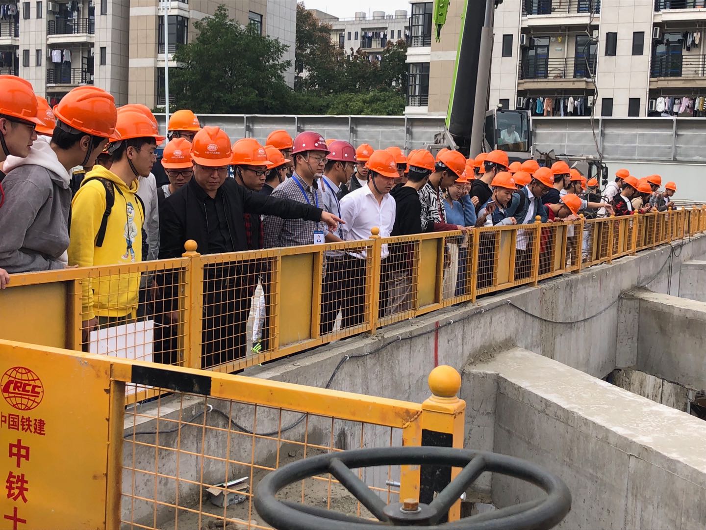 组织土木工程专业的80余名研、本学生参观了中铁十六局杭州地铁SC8-2标在下沙的工地,现场观摩并学习了建基建设集团的双轮铣(SMC工艺)地连墙施工过程。中铁十六局项目经理郑中刚、项目党支部书记寇向南,建基集团创建人、建工院兼职教授沈国勤及董事长沈飞、总经理杭旭亚,学院副院长俞峰、党委副书记韩晶晶参加了本次的交流学习。交流学习分三步骤进行。
