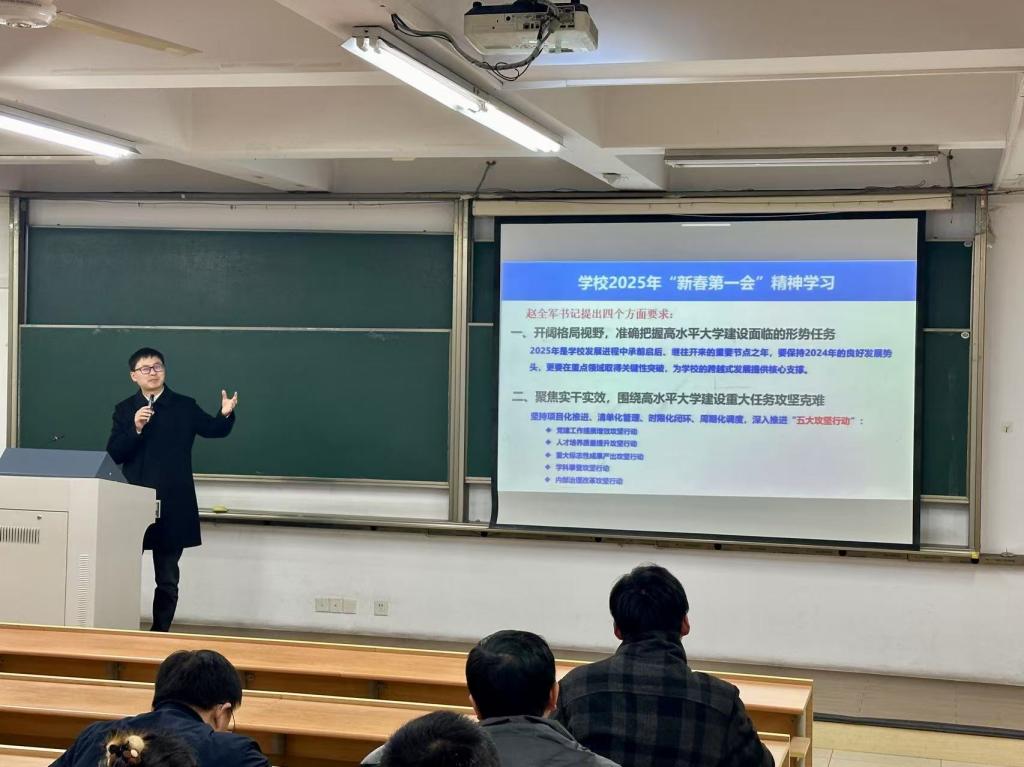 学术院长顾晓强结合学校新春第一会精神传达,对学院年度重点工作任务进行了部署顾晓强指出,要紧密结合学校2025年高水平大学建设发展图景积极对标学校“党建工作提质增效攻坚行动、人才培养质量提升攻坚行动、重大标志性成果产出攻坚行动、学科攀登攻坚行动、内部治理攻坚行动”五大攻坚任务,努力完成学院土木工程博士点增列申报、本科教育教学审核评估、高层次人才引育、科研经费、大项目大成果申报、人才培养和科研合作、国际化工作等重点攻坚任务。他强调,全体教师要坚定信心,贡献力量,合力推动学院重点任务落地。