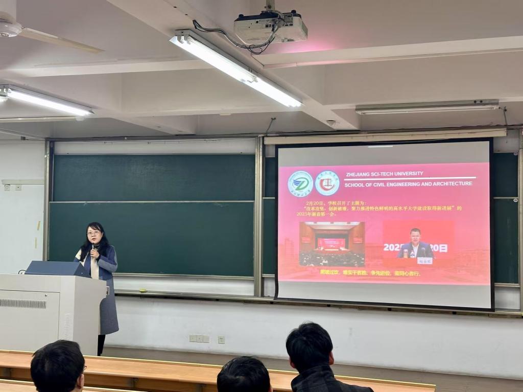 226下午建筑工程学院7-105教室举行新学期工作部署会暨全体教职工大会会议传达了党委书记赵全军校长陈文兴在2025新春第一会的讲话精神和全面从严治党工作暨清廉浙理建设推进会相关精神等号召全院教师聚焦实干实效,奋力完成新一年重点工作任务。学院全体教师参加会议会议由副院长徐辉主持