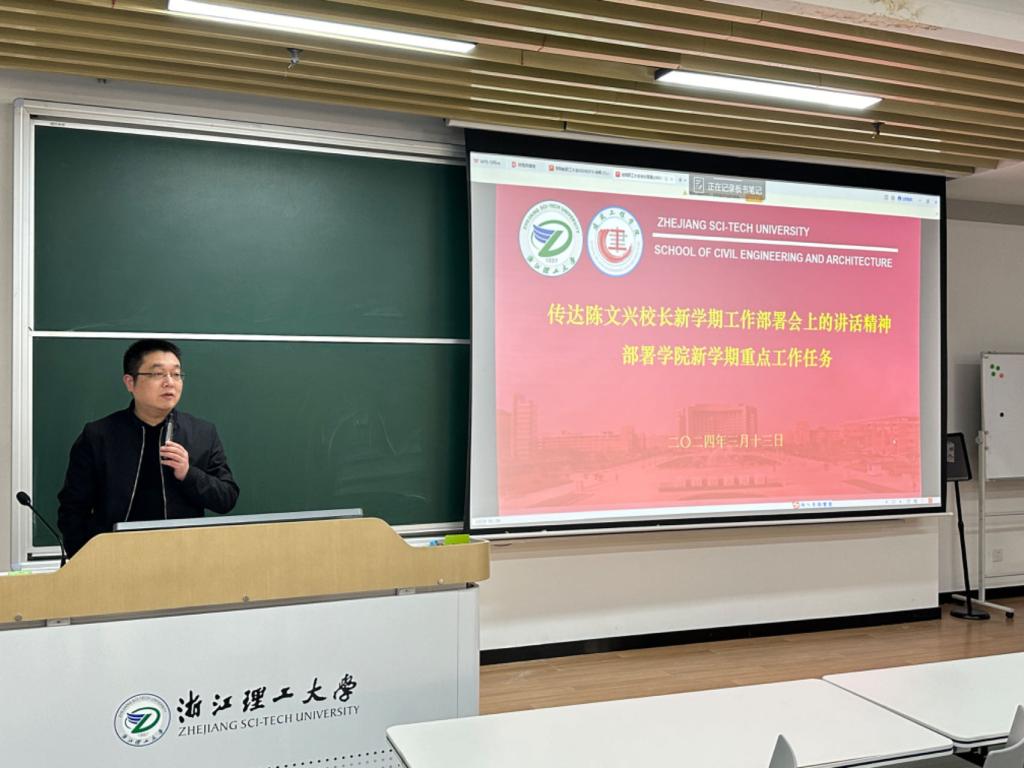 3月13日下午,建筑工程学院在2N119教室举行新学期工作部署会暨全体教职工大会。会议集中学习了全国教育工作会议、浙江省“新春第一会”等会议精神;传达了党委书记赵全军、校长陈文兴在2024年工作部署会的讲话精神和学校第四次党代会动员部署会、全面从严治党工作暨清廉浙理建设推进会相关精神等,号召全院教师激荡奋发向上、锐意进取的信心,奋力完成新一年重点工作任务,推动学院高质量发展迈出新步伐。学院全体教师参加会议。会议由学院党委书记李娜主持。