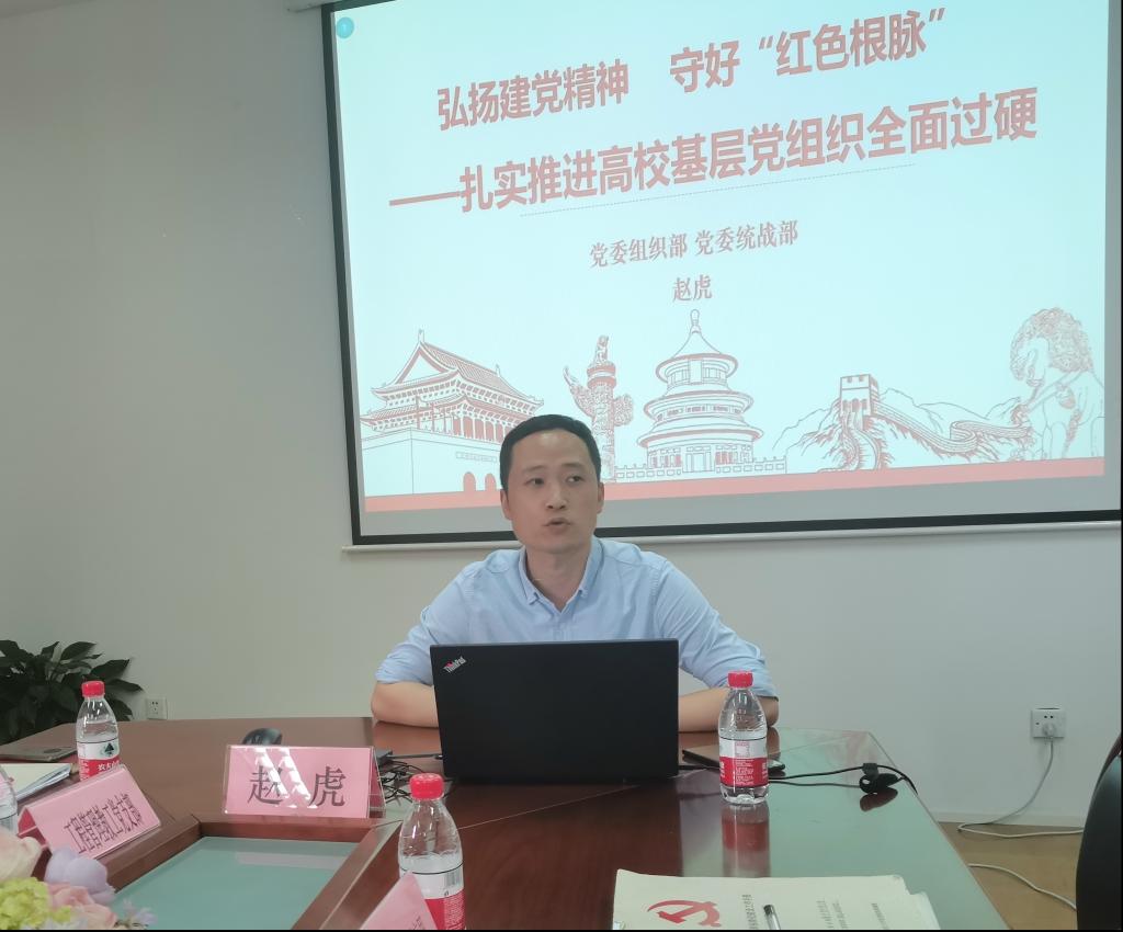 赵虎作题为《强组织 做表率 守根脉 ——扎实推进高校基层党组织全面过硬》专题培训。他从夯实基层抓党建、高质量做好党员发展工作、推进基层党建创新与党建“双创”三个方面生动细致地讲解和指导党支部如何标准化、规范化、创新化开展党建工作。