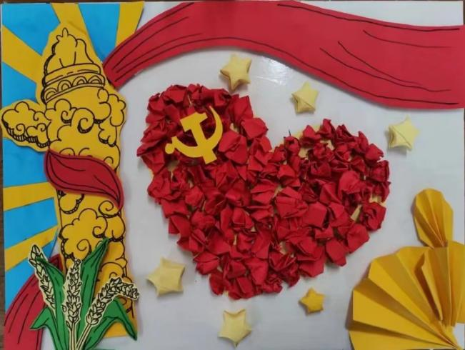 本次实践活动,发展对象们情满于胸,落墨于纸,以“大爱之心,大美之艺”,将所见所闻、所思所感凝聚在手中,通过手绘剪切各种丰富的红色图案制作成一幅幅立体拼贴画,表达对中国共产党光辉历程和丰功伟绩的礼赞,讴歌中国人民和民族精神,描绘华夏大地山河壮丽、春和景明的图卷,充分表达大家永远跟党走的坚定信念和为建设中国式现代化贡献青年力量的热切决心。