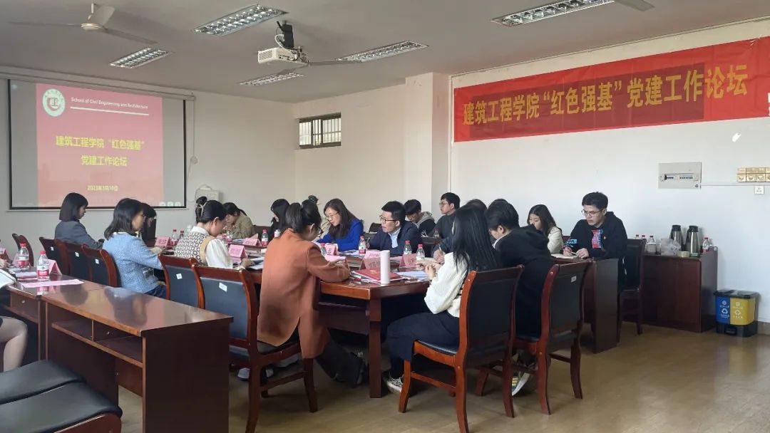 会上,建筑学教工党支部、实验中心教工党支部、工程管理学生党支部、建筑学第一学生党支部、土木工程第一学生党支部、风景园林研究生党支部等6个基层组织,从思想理论武装、党员日常管理、组织党日活动、支部品牌培育、党建业务融合、廉洁文化教育等多个方面分享了各自在发挥支部书记主体责任,加强支部建设方面的做法和实践,分析了存在的困难和问题,以及对今年支部工作的思考和举措。