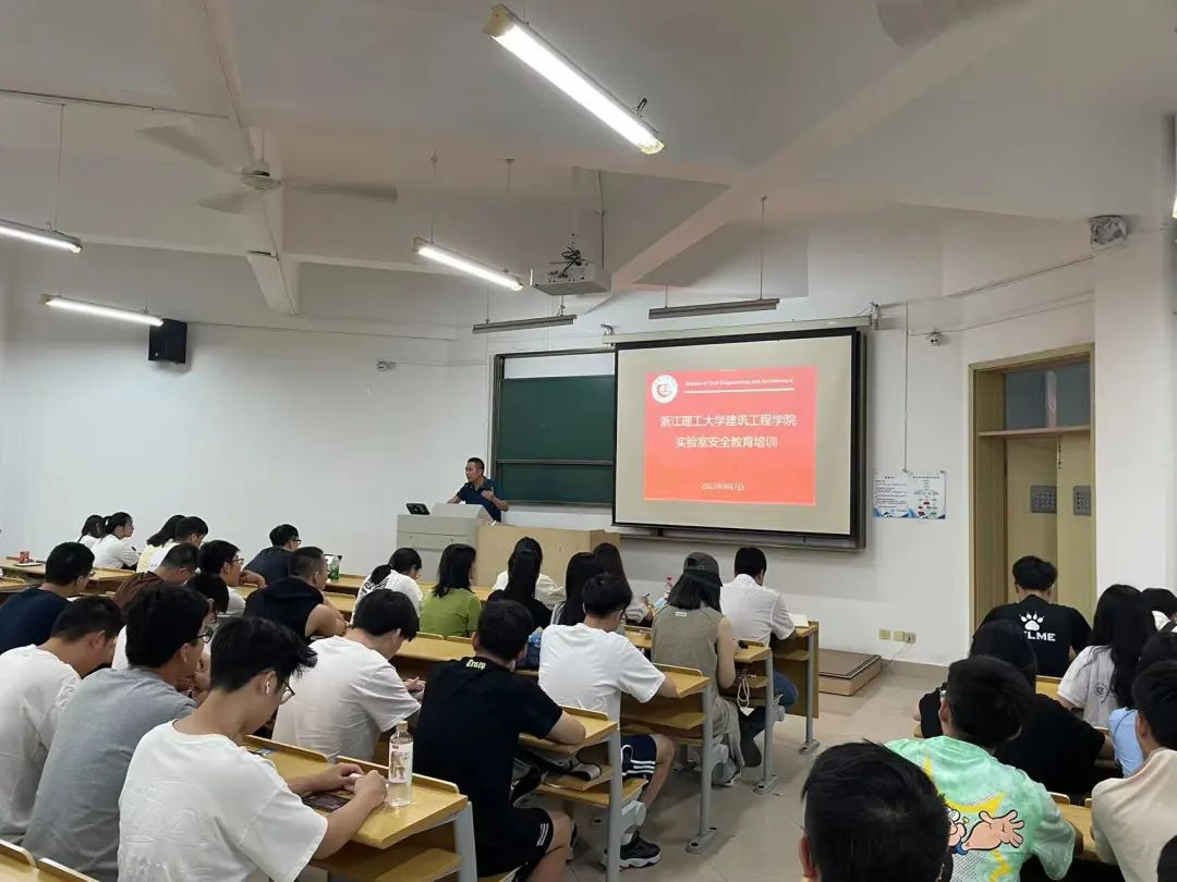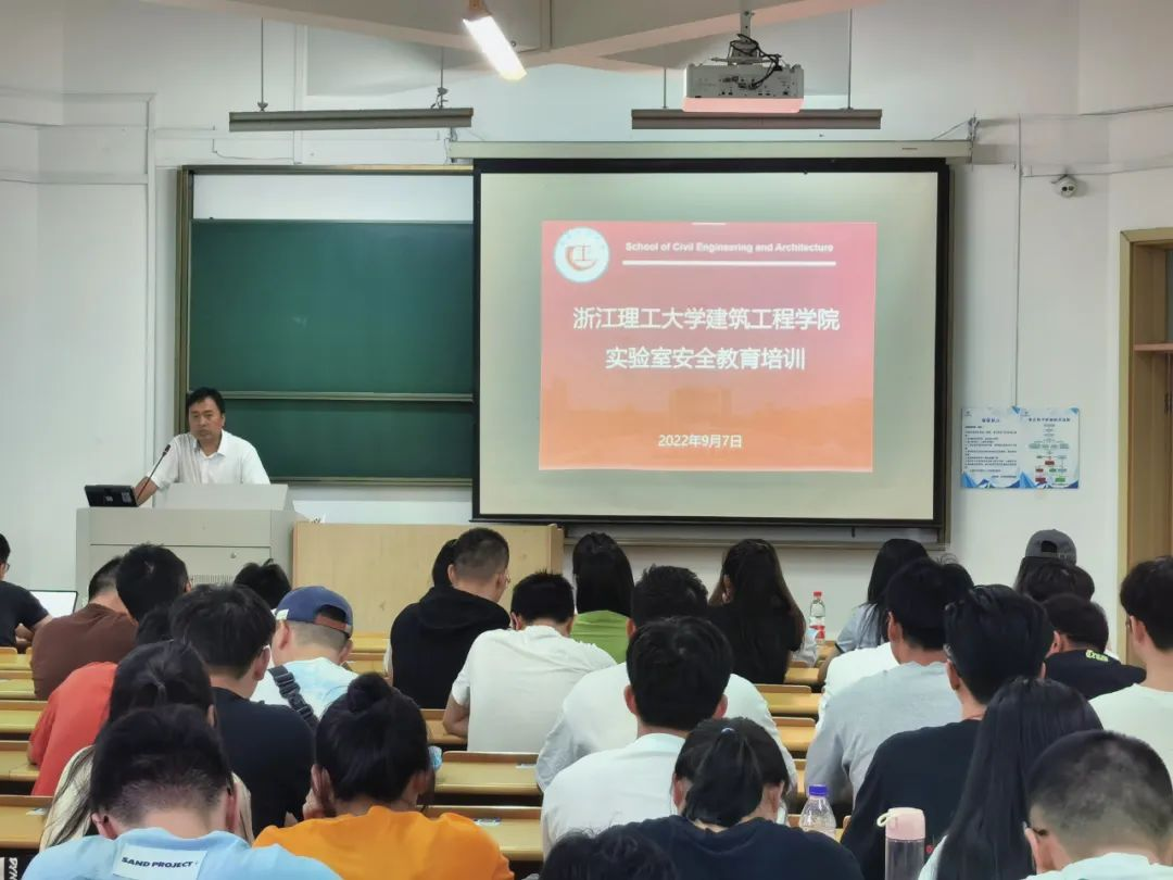 于9月7日线下举办了实验室安全教育讲座,邀请校资产与实验室管理处副处长周杭伟和学院实验中心主任李国建老师担任主讲嘉宾,研究生辅导员叶兴涛老师和全体研究生新生参加了此次讲座,讲座由学院副院长杨博主持。