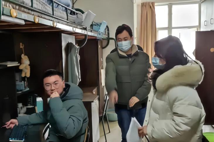 学院领导、班主任、辅导员老师和学生干部深入学生宿舍内部,与学生亲切交谈,倾听帮助解决同学们急难愁盼的事情,引导同学们与室友和睦相处,爱护寝室卫生, 提醒同学们注意寝室安全用电,人身财产安全及防诈骗。辅导员老师们希望大家能坚持早晚自习,同时注意改善宿舍环境卫生,培养良好的学习和生活习惯,用严格自律的高要求自我管理,自我“增负”,把目标管理和价值观确立融入日常学习生活,做符合时代要求的高素质人才。