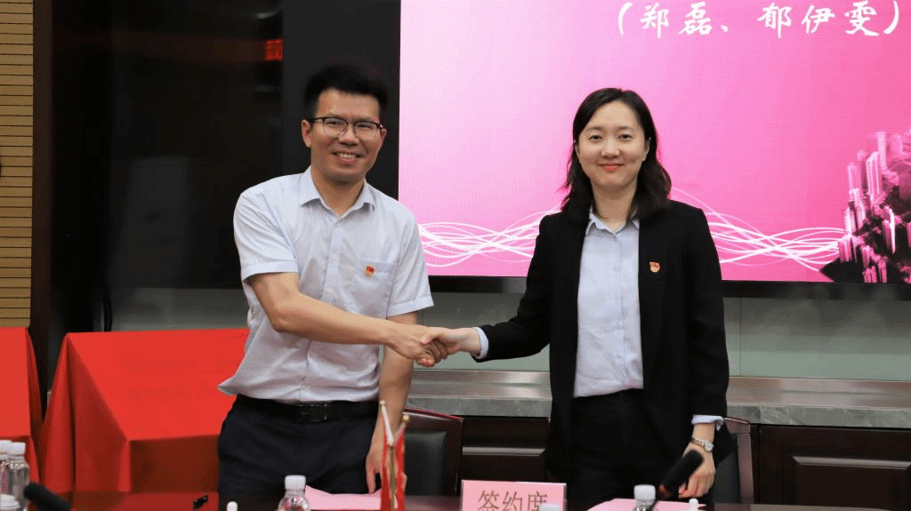 徐辉向企业介绍了学校和学院的教学、科研和人才培养情况等。随后,郑磊、郁伊雯分别代表校企双方签订“党建联建”协议书,李娜、郁伊雯共同揭牌。刘勇与郁伊雯签订“研究生联合培养”协议书,并为联合培养基地授牌。