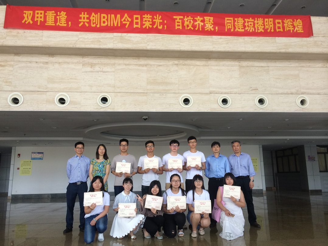 参赛的三个代表队均获全能一等奖的好成绩(领队:杨云芳,指导老师:郎启贵、吴大志、周红燕、傅聪、崔暘、王炎)。其中,“BOOM BIM”团队获得工程设计专项奖一等奖、工程管理专项奖一等奖;“K5”团队获得绿色建筑分析专项奖一等奖、工程设计专项奖一等奖及工程造价专项奖一等奖;“最强大脑”团队获得工程管理专项奖一等奖、工程设计专项一等奖。