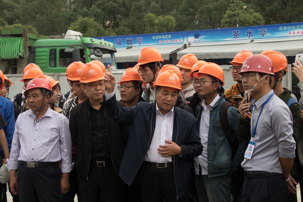 首先,沈国勤就关于过江隧道等问题进行现场教学,讲解了在工程项目建设中各种基础的施工工艺,并现场演示了机器施工流程,讲述了过江端头施工工艺的难度和挑战,学生们在观摩实践中更加切实的认识到了基础工程施工技术。