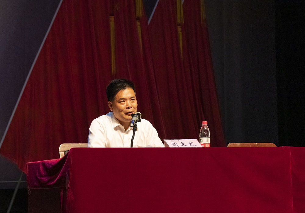 正当其时。围绕“初心”、“使命”,周文龙从历史的维度,以详实的史实、生动的案例,全面梳理了中国共产党的发展历程,阐释了党的初心和使命,即为中国人民谋幸福,为中华民族谋复兴。周文龙结合00后的特点,给同学们提了四点建议:一是学会关心自己,换位思考,相互理解;二是在学习中明确发展目标,以目标引领发展;三是将个人发展与国家民族的命运相结合起来,打造发展共同体;四是学会独立学习,独立思考,努力做好当前每一件事。他结合青年一代的使命和担当,以 “修身”、“坚持”、“理解”为 三个关键词,用伟人的事迹、平凡者的故事、身边的案例以及学生的榜样来激励广大学子,希望同学们用习近平新时代中国特色社会主义思想武装头脑,坚定马克思主义信仰,志存高远,牢记青年人的使命,勇于担当,成为新时代弄潮儿。