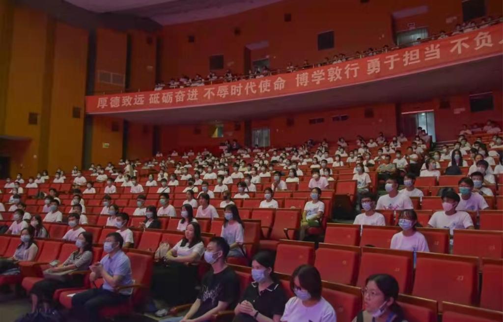 2021级新生开学典礼暨开学第一课——初心·匠心在国际会展中心举行。学院领导班子、系主任、三办主任、新生班主任、研究生导师、全体辅导员与113名研究生及345名本科生以及校友代表吴卫祥共同参与了本次典礼,典礼由党委副书记李孝明主持。