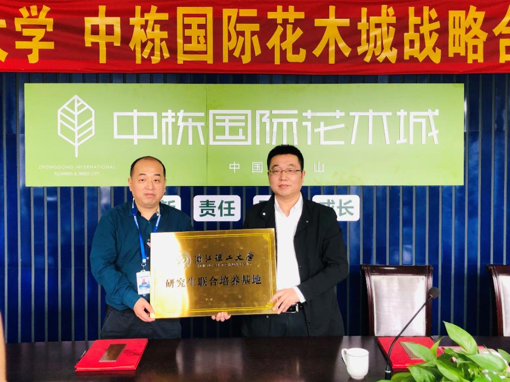 与浙江中栋花木城有限公司在萧山中栋国际花木城隆重举行战略合作与共建研究生联合培养基地签约及授牌仪式。