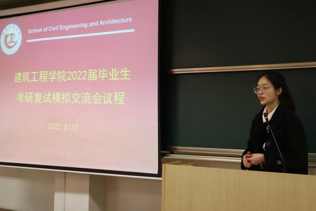 在2N219举办了2022届毕业生考研复试模拟交流会。担任复试模拟会评委老师的有土木工程系专任教师陈萍、建环系专任教师马景辉、工程管理系专任教师张春勤、建筑系专任教师周强、风景园林系专任教师胡立辉,抖阴
