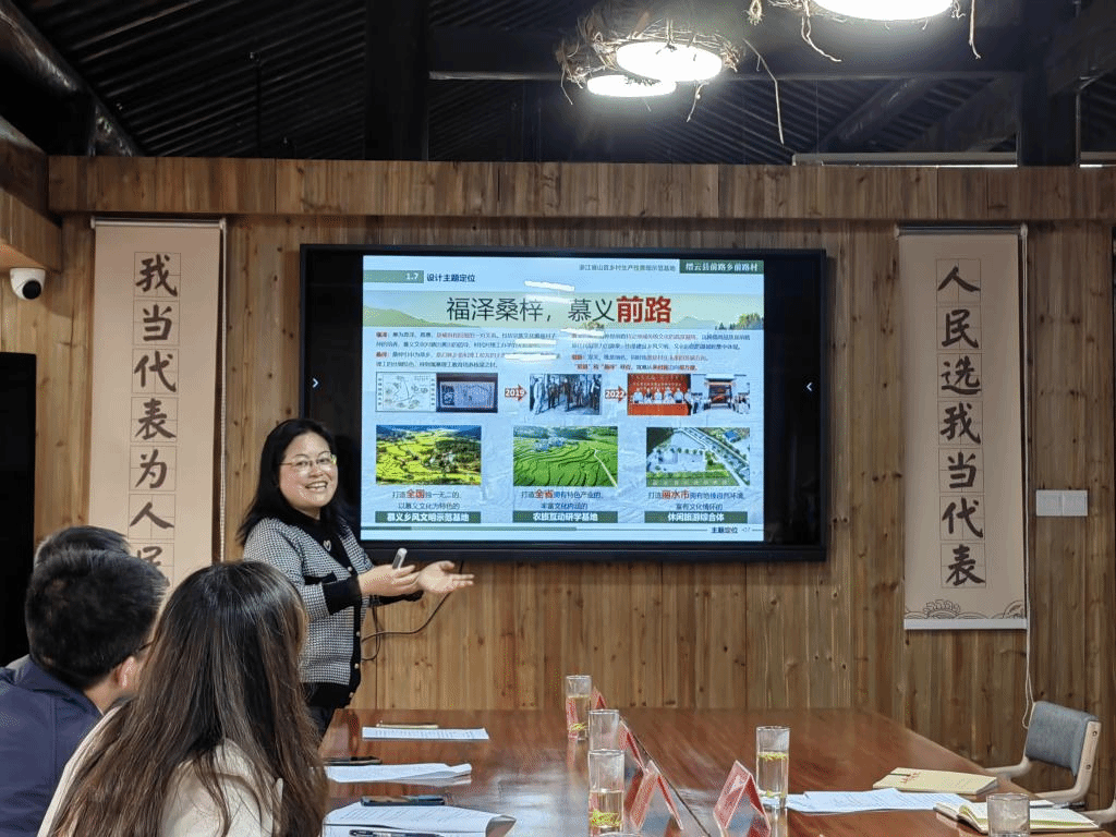 座谈会上,洪艳教授重点介绍了为前路量身打造的“缙云前路乡前路村设计方案”,提出以“福泽桑梓,幕义前路”为主题,将前路村建设成“浙江省山区乡村生产性景观示范基地”的设想。胡文君对洪教授的设计方案表示肯定和真诚感谢,表示将集中力量深入研究,结合前路实际,分阶段落地,让前路在共同富裕的道路上越走越好。随后,双方围绕党建联建、产学研合作、暑期社会实践等工作开展了深入座谈,双方对接需求,聚焦发展,在建设教育教学实践基地、“共同富裕”红色讲堂,举办“我在缙云话初心”等活动方面形成共识。