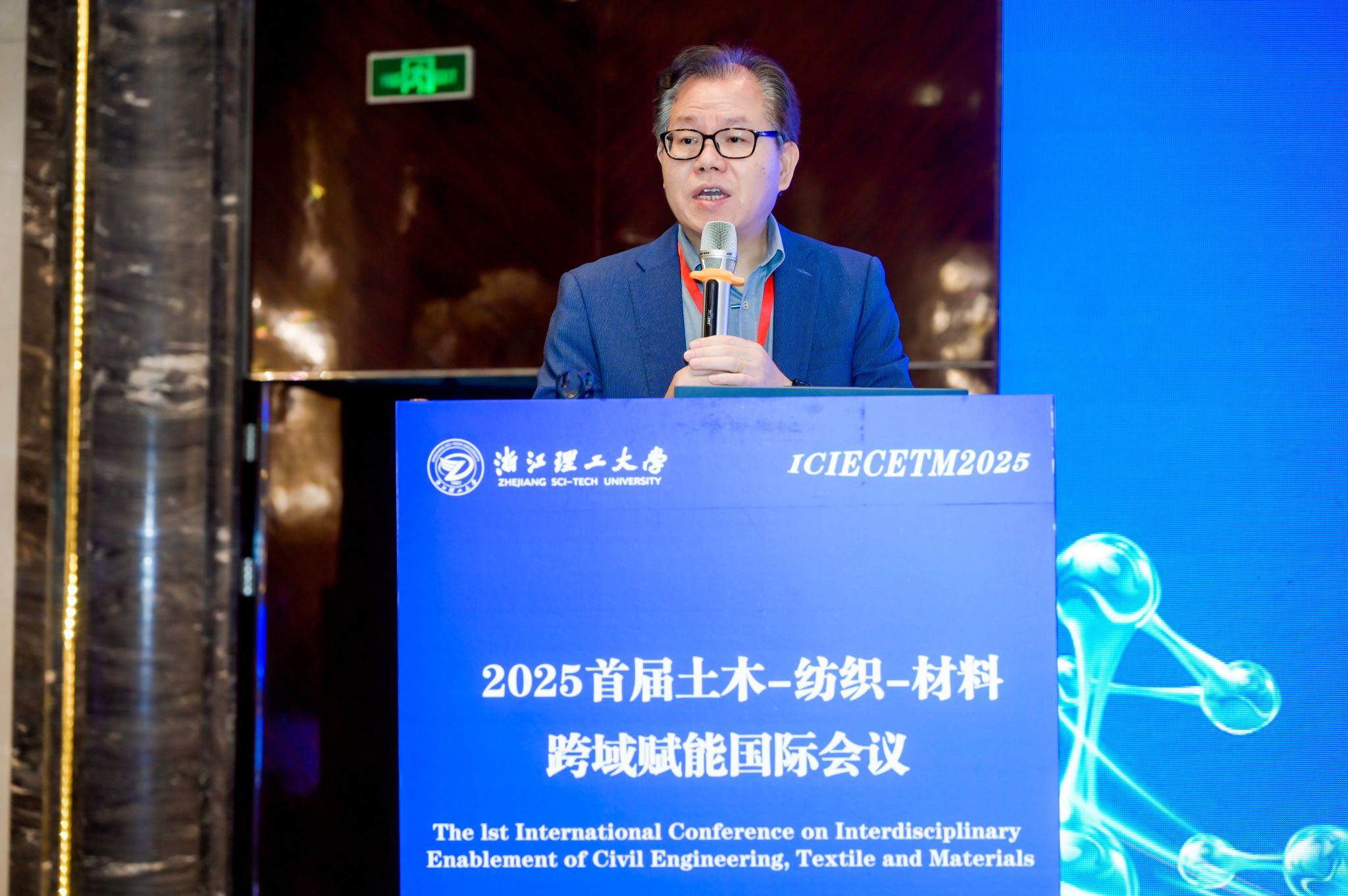 中国纺织工程学会总工程师刘军、浙江省土木建筑学会理事长杨学林分别致辞。刘军表示,纺织新材料在增强结构性能、实现智能监测等方面展现出巨大潜力,期待会议能推动纺织与土木、材料的协同创新与成果转化,为传统产业升级注入新动能。